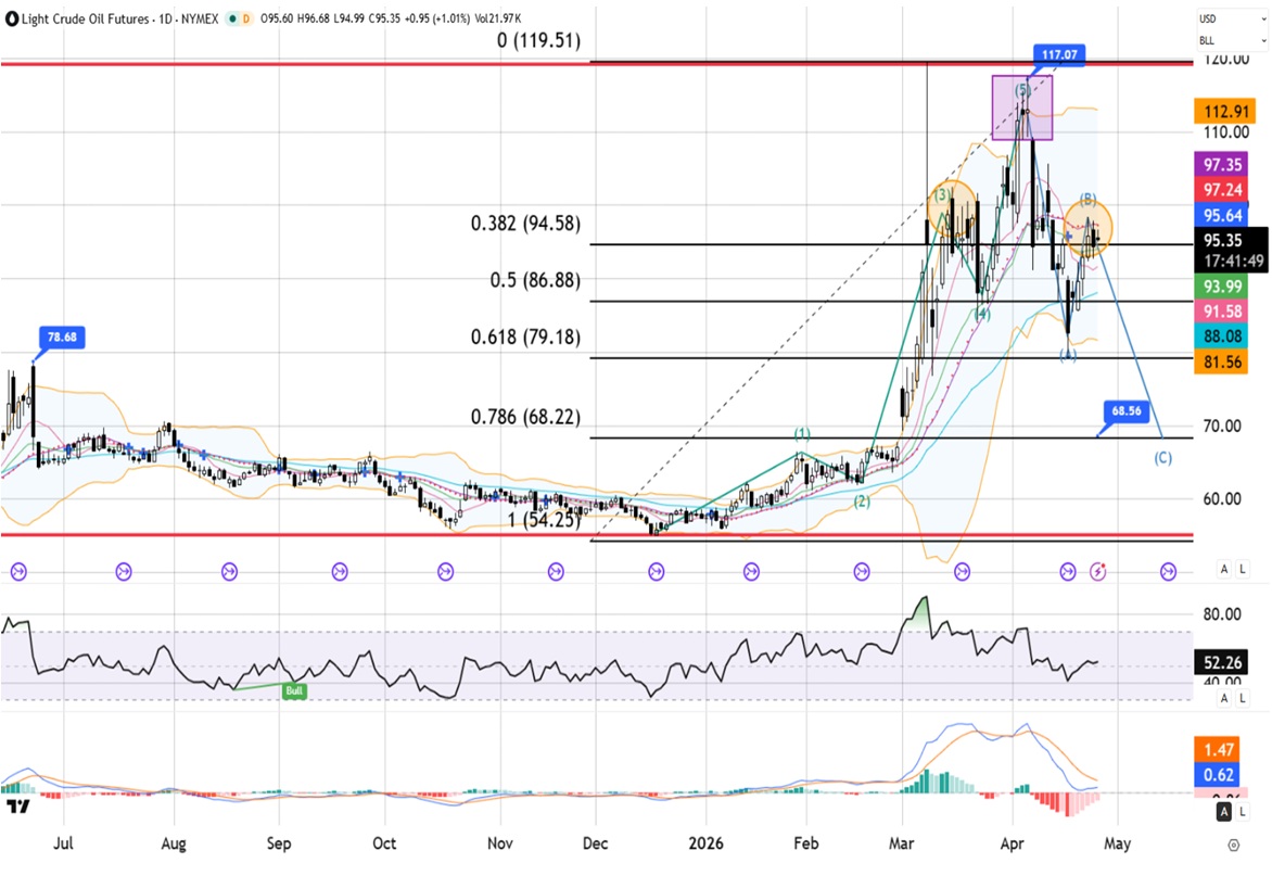 Technical View: $94.35. Price remains range-bound with breakout resistance established at $98.90, followed by significant barriers at 100.45 and 101.20; a successful breach above 101.20 could target 104.25. Key supports are situated at 90.50 and 85.80. The bullish outlook only neutralizes if prices slip below 82.90, while a break of the 77.35 channel support would signal a more profound structural weakness. We can see a Head & Shoulder Top pattern forming in the charts although the pattern is not complete yet, it could be an early warning of a deep correction in the coming weeks.